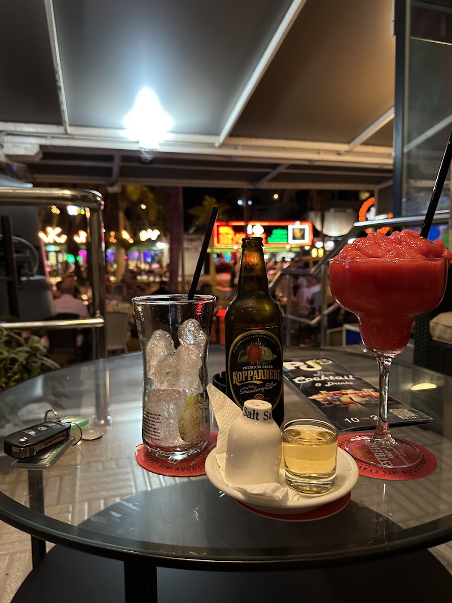 Let’s start first with people. Juan and his team are so friendly and welcoming that I can’t speak highly enough about them. They went out of their way to accommodate us. Drink choice is fantastic although we did like stowford press with extra ice. Cocktails looked fab too. Food…wow, just wow. If you order a Godzilla burger then I can reassure you that you will not buy a better burger anywhere and it is such a competitive price. My daughter was hooked on the strawberry and ice cream dessert and the waiters were always attentive to our needs. Im a big lad with a healthy appetite, so trust me, whatever you sample on the menu you will enjoy. It was so good we went there 6 times and only stayed for 10 days. Great choice of sports on the many screens which was an added bonus. We hope to be back soon but for now it is adios and if you are reading this review and undecided on where to drink and eat then think no more. One for the road Juan, cheers